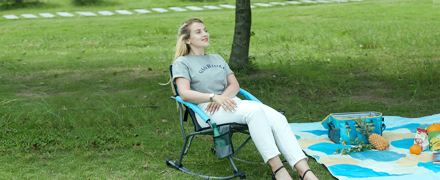 PORTAL Rocking Camping Chair Folding Portable Rocker Outdoor with Cup Holder for Patio